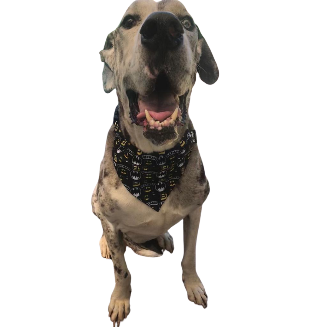 Unleash your pup's inner hero with our Official Licensed Batman Dog Bandana – the caped crusader's flair for your furry friend! This bandana, perched on an adjustable and comfortable webbing collar, transforms your pet into a Gotham fashion icon. Ready for action and easy to wash, it's the perfect blend of comfort and style for your canine superhero. Whether patrolling the yard or striking a pose, this bandana is more than an accessory; it's a signal that your pup is ready for adventures in Gotham and beyond.