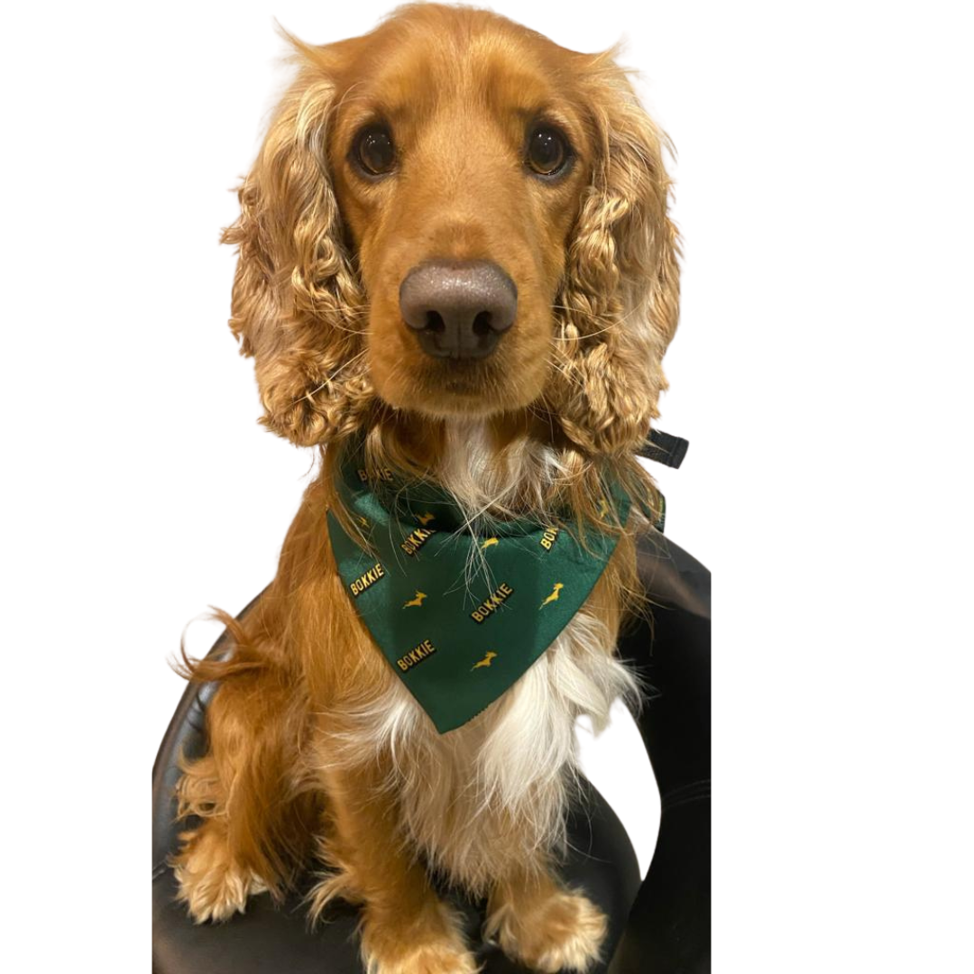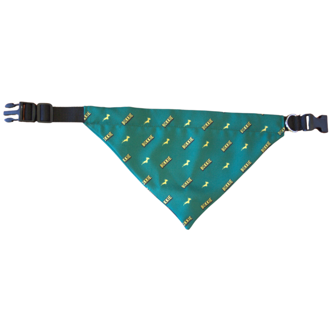Gear up your pup for the "Paw-rades" with our Official Licensed Bokkie Dog Bandana – where canine fashion meets rugby passion! Support the Boks in green and gold as your furry friend dons this comfortable bandana on an adjustable webbing collar. Ready for scrums and cuddles alike, this bandana is not just an accessory; it's a roar for rugby pride. Easy to wash and perfect for wagging tails, it's the ultimate blend of flair and fanfare for your pet's sporting spirit. Because when it comes to pet fashion, this bandana is a try that converts every walk into a victory lap!