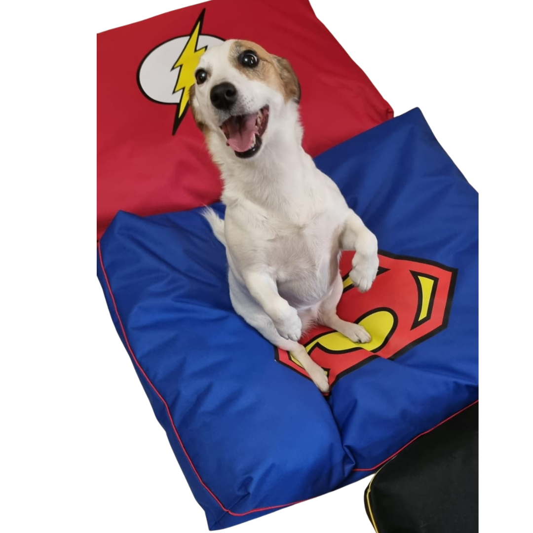 Elevate your pet's nap game to superhero status with our Official Licensed Superman Pet Bed – where comfort meets Kryptonian style! The 600D water-resistant exterior, featuring the iconic Superman logo, ensures your furry friend rests with the strength of a superhero. Inside, your pet will discover a cloud-like haven of hollow conjugated siliconized fiber – a refuge worthy of a superhero's repose. Included is a zip for easy access to fill it up with extra fluff to tailor the comfort level to your pet's liking. A quick wipe with a damp cloth restores its pristine appearance, or for more substantial missions, toss it into the washing machine on a gentle cycle. Give your pet the sleep of steel – where every nap is a heroic leap into dreamland!
