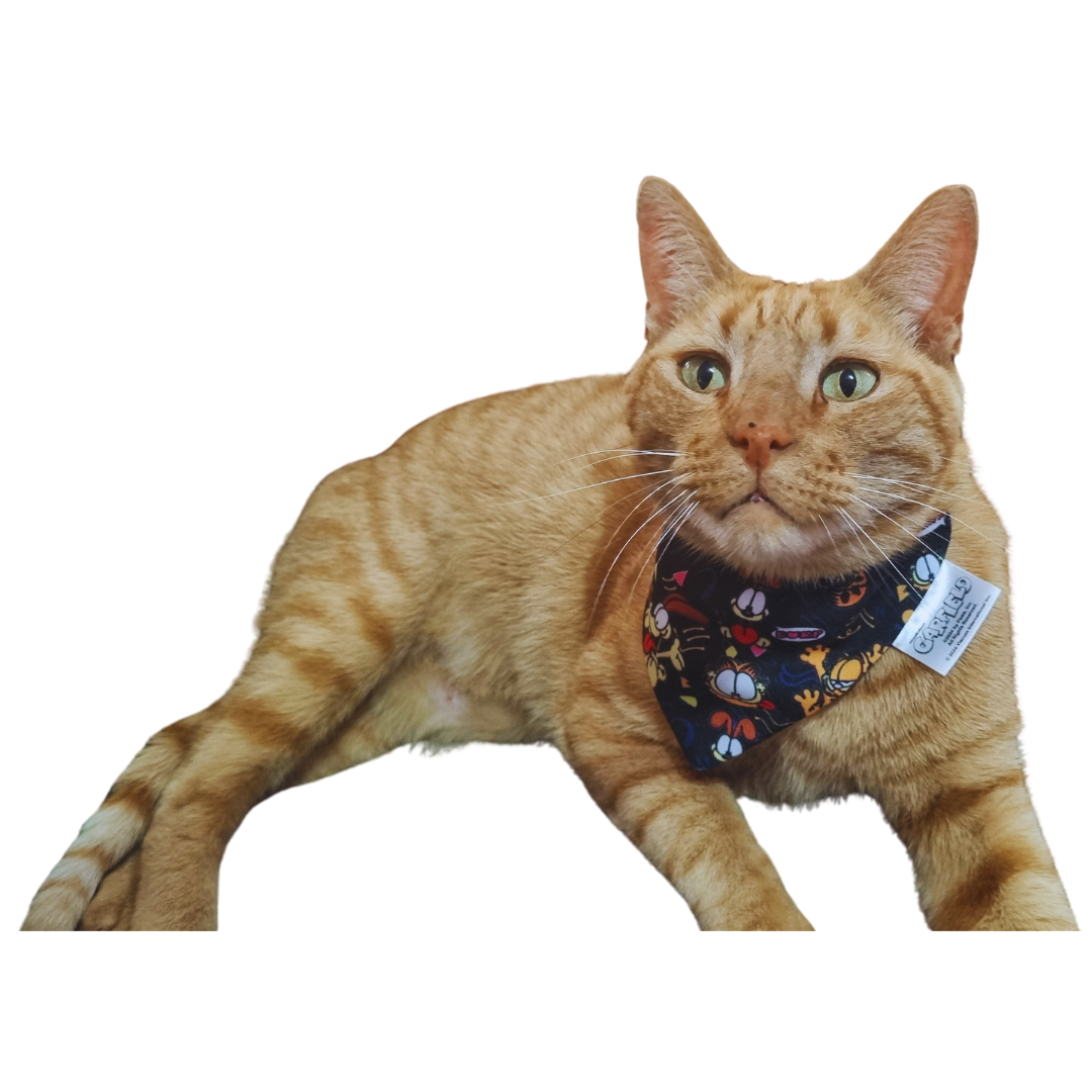 Dress your kitty in iconic style with our Garfield bandana! Designed for comfort and safety on a 10mm webbing collar, featuring a convenient safety release clip. Let your feline friend showcase their love for Garfield with flair and feline finesse!