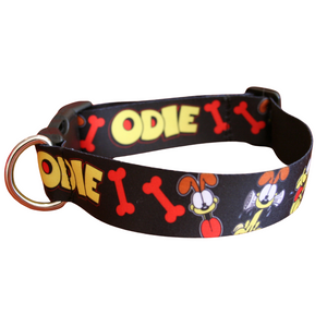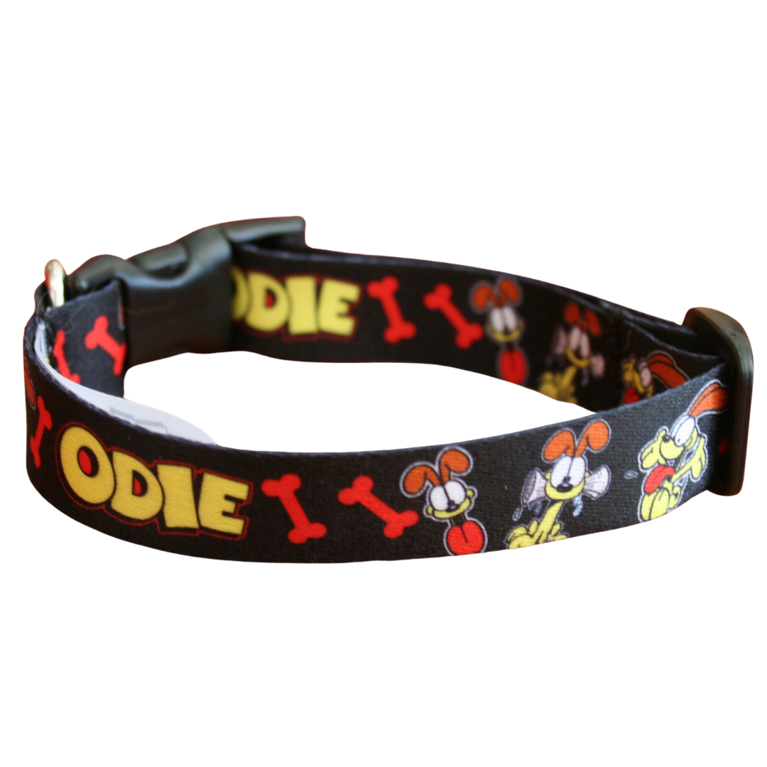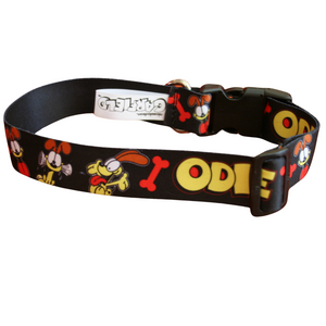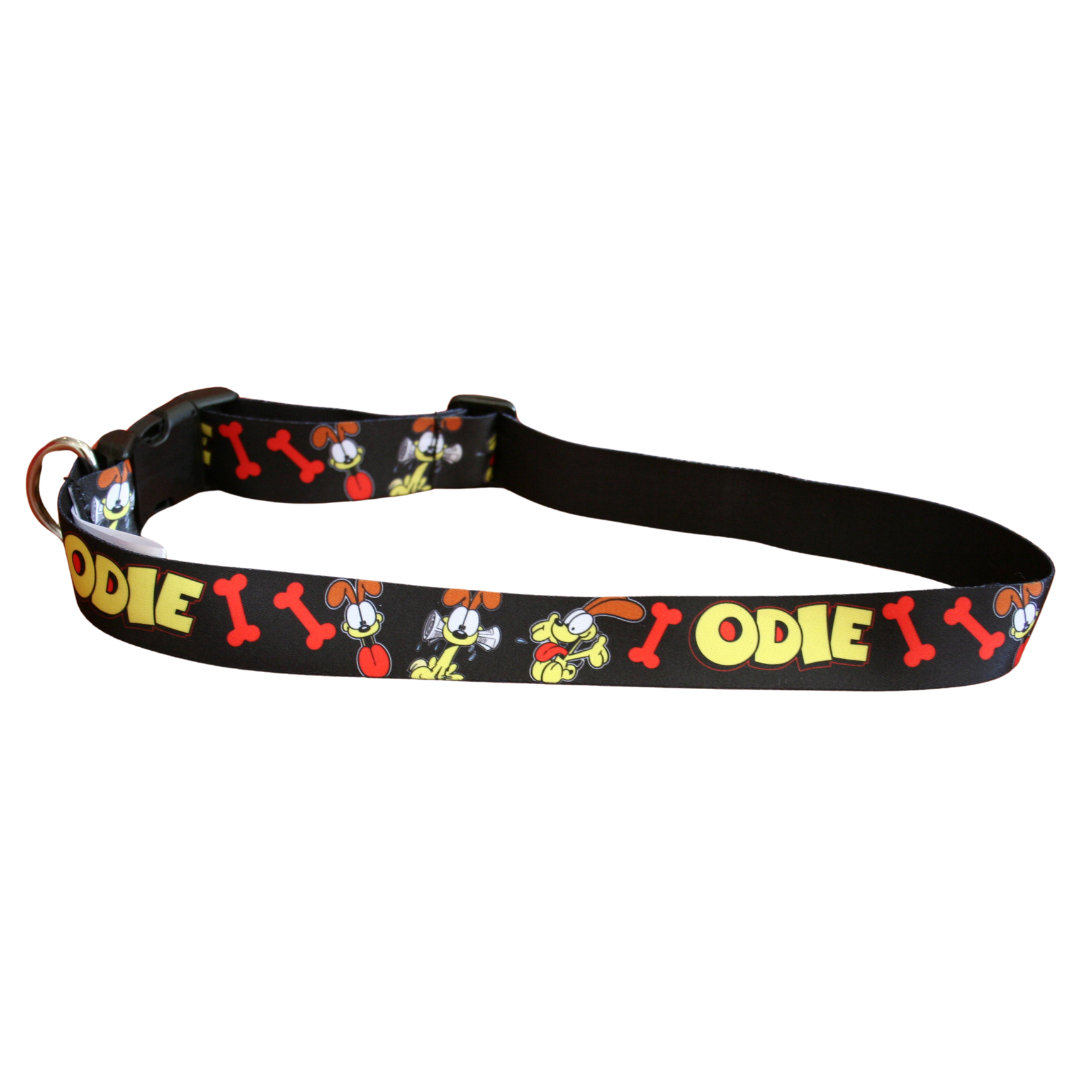 Let your pup unleash their inner Odie with our official Garfield dog collar! Crafted from sleek satin weave nylon webbing, it's as durable as it is stylish. With adjustable sizing for the perfect fit, your furry friend will strut with Odie's charm in every wag!