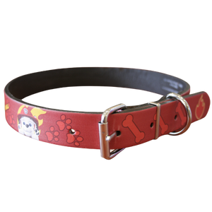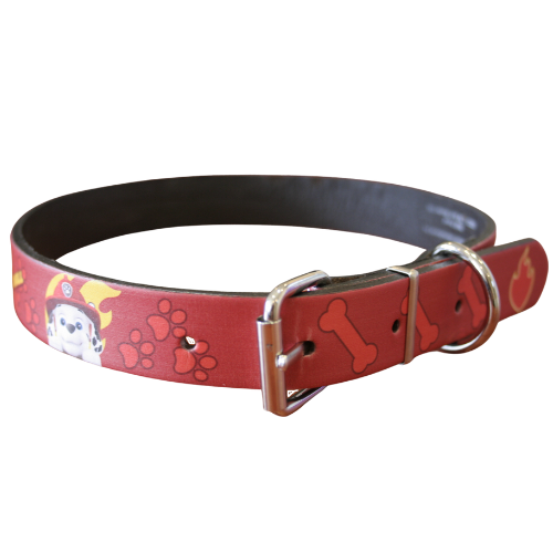 Turn your pup into the firefighting fashionista with our Official Licensed Paw Patrol Marshall Genuine Leather Dog Collar – where playful style meets eco-conscious elegance! Crafted from sustainably sourced leather in South Africa, this collar is more than leather; it's a commitment to canine chic with a conscience. The metal buckle and D-Ring ensure your furry firefighter is securely styled for all pup adventures. Whether extinguishing playtime fires or just chilling in style, this collar is the ultimate blend of flair and durability. Let your pet blaze a trail in sustainable fashion, because when it comes to Paw Patrol, this collar is the top dog!!