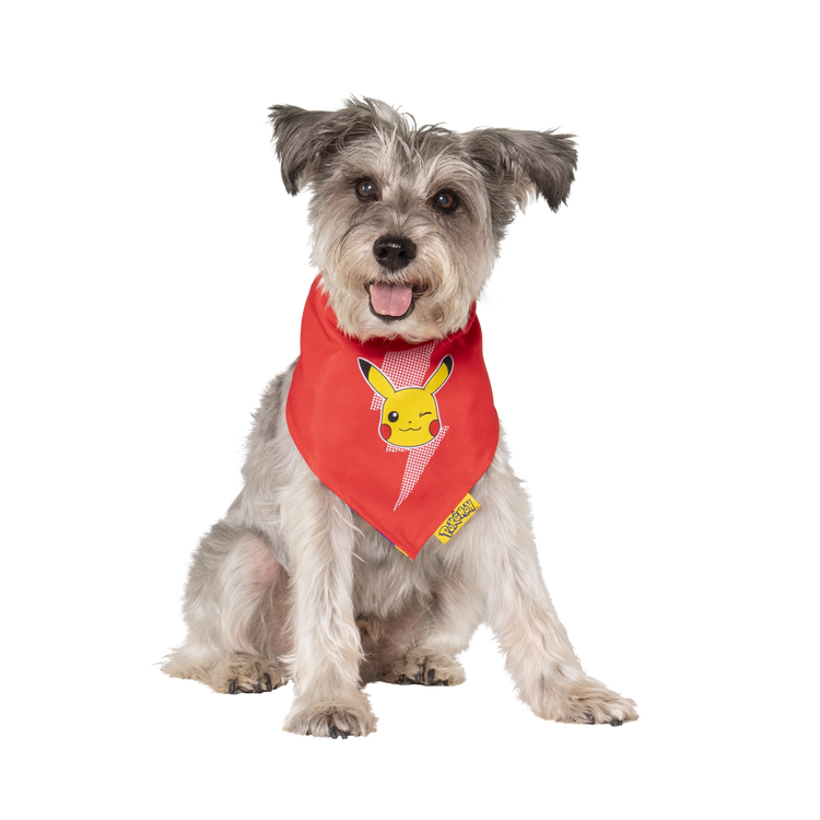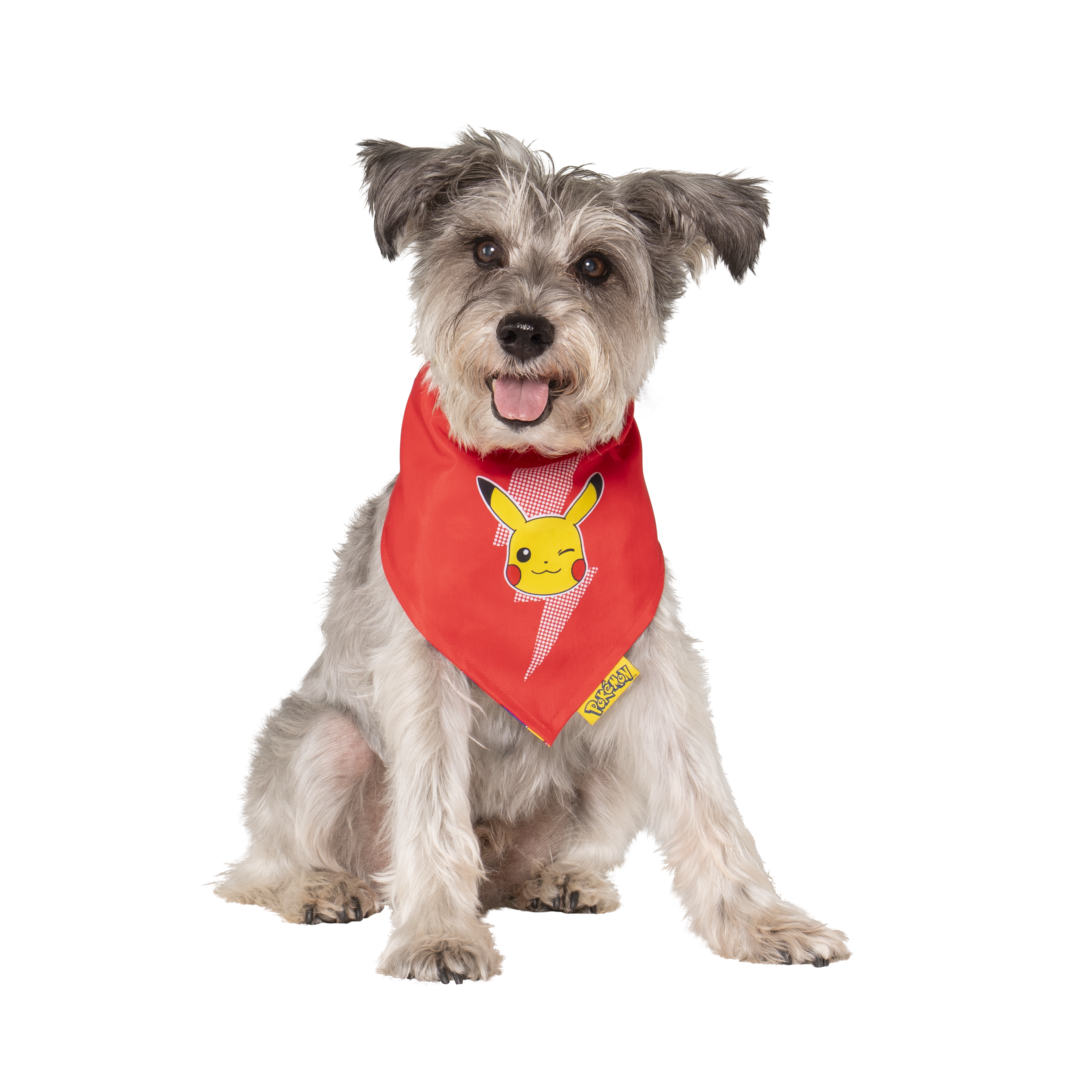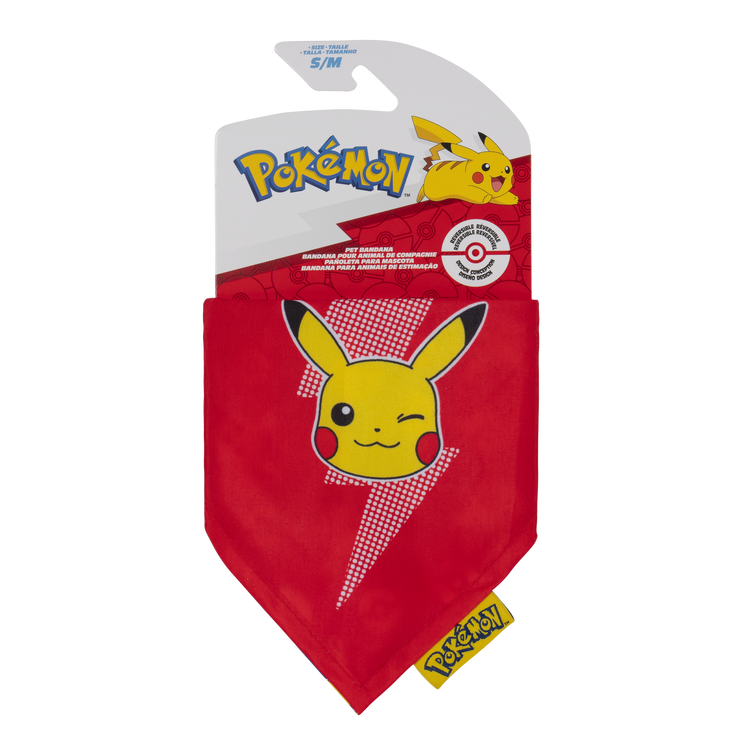 Dress up your pet with the Pokémon Pikachu Pet Bandana. Designed for casual wear, this two-sided reversible bandana features a cute graphic design of the iconic Pikachu. Tie it on your pet from either side for a comfy, adjustable fit. It is available in two sizes: S/M and L/ XL. All pet apparel is made with high-quality fabric and high-resolution prints. Officially licensed Pokémon product.