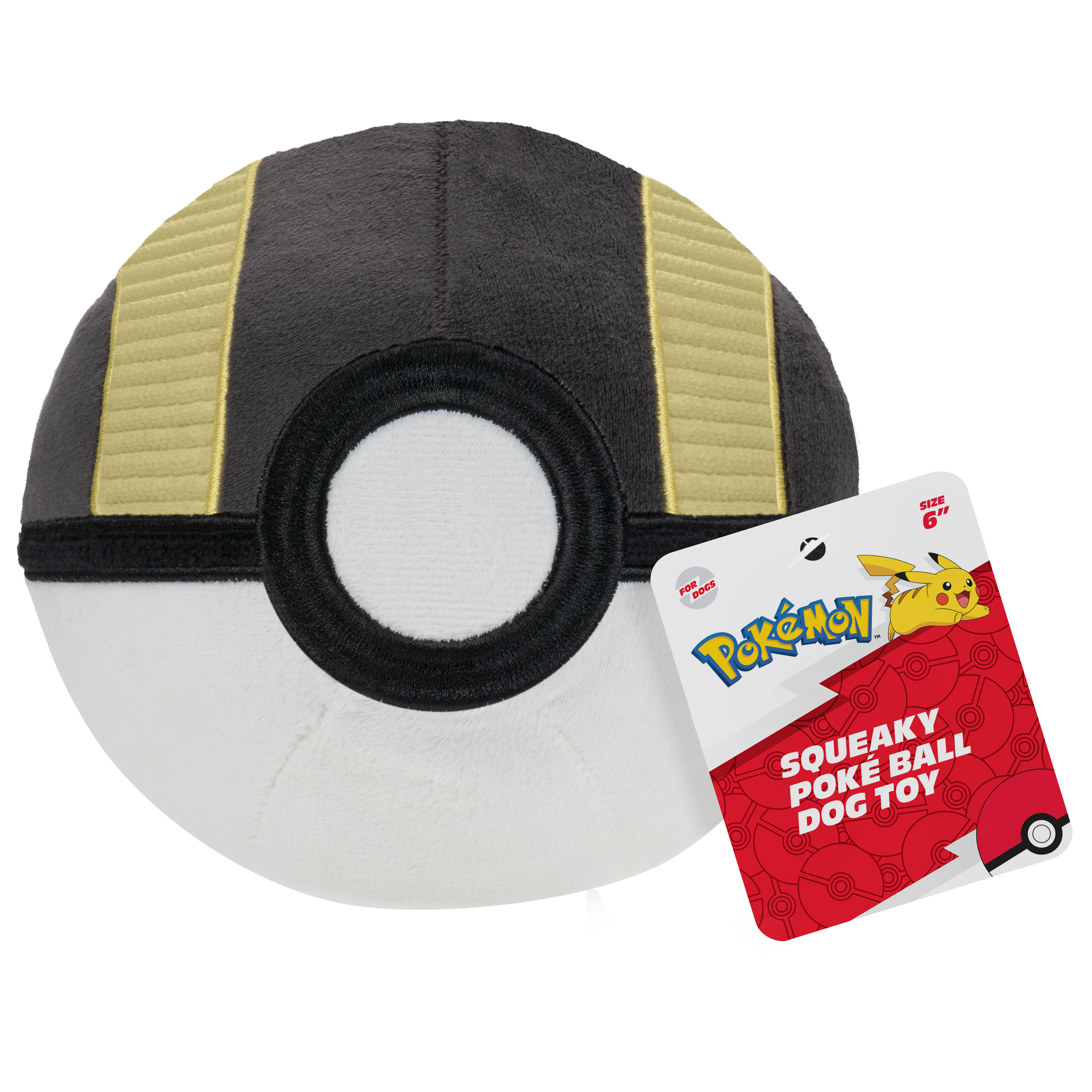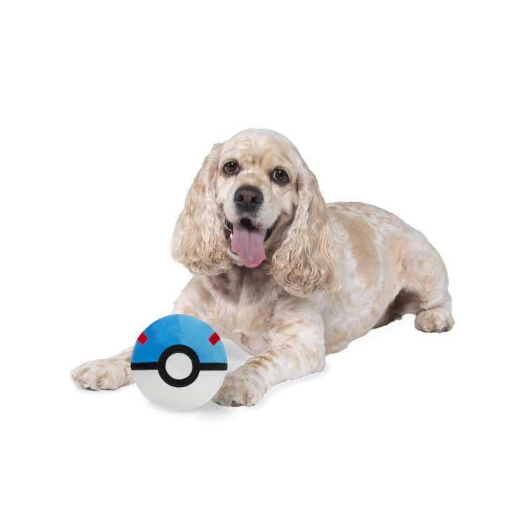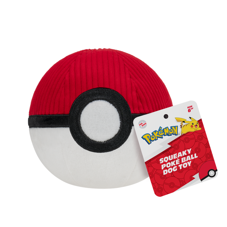 Discover the world of fetch with the Pokémon Poké Ball Plush Ball. This 6-inch plush dog ball is designed to look like a Poké Ball and features a hidden squeaker inside. Plush is super soft and fun to chew. Officially licensed Pokémon product.
