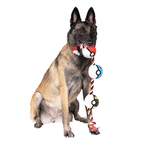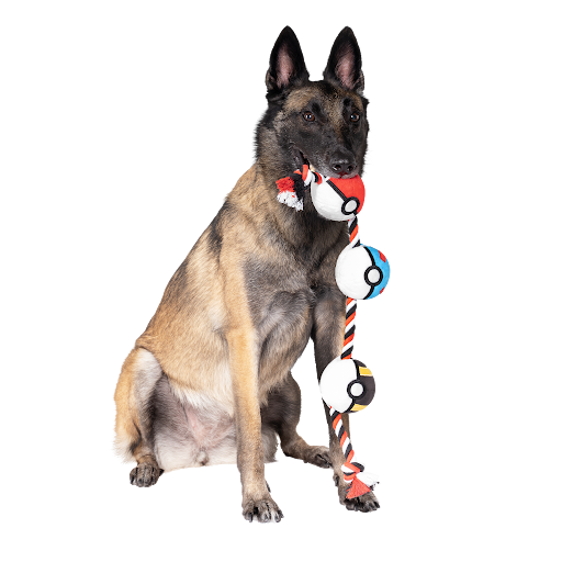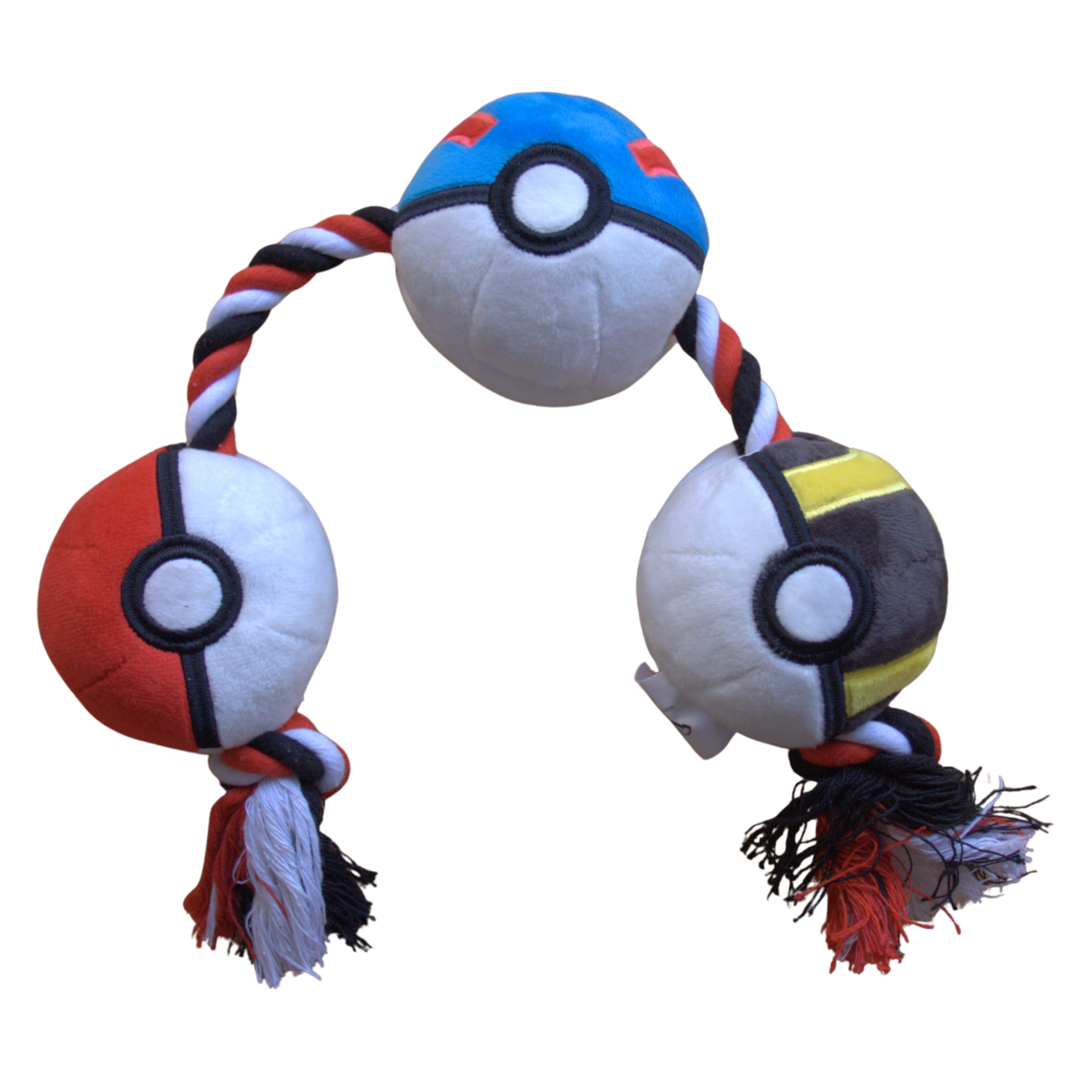 Snug and tug with the Pokémon Poké Ball Plush Rope. This small-to-medium breed dog toy features a 22-inch rope that’s adorned with three unique Poké Ball plushies. The plushies are made of soft material and filled with squeakers and crinkles for stimulating play. The durable rope was designed for tug play but is not recommended for serious chewers.