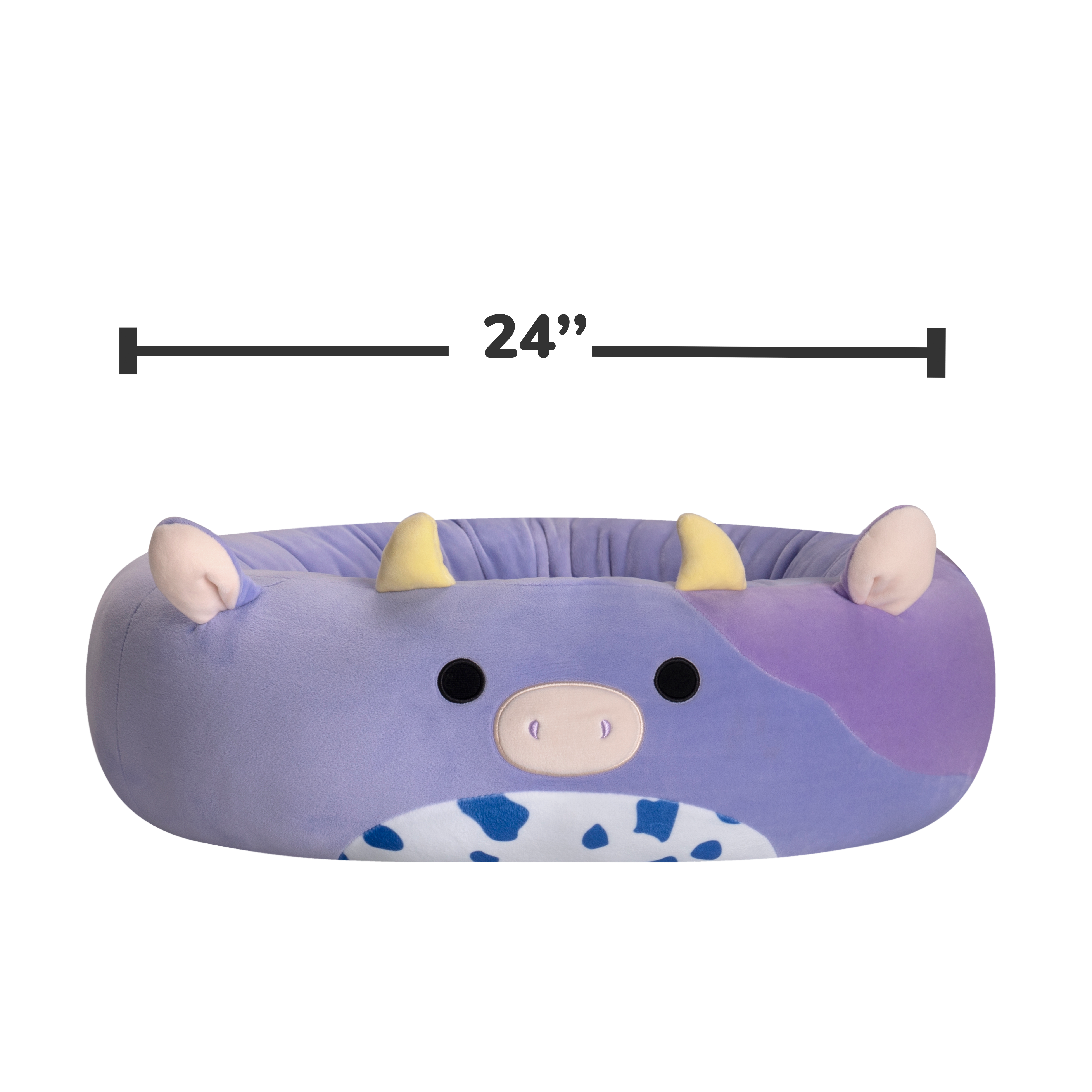 Grow your Squishmallows Squad with this super-soft Bubba the Cow bolster pet bed! Squishmallows pet beds are soft, snuggly, and built to last, finished with a non-skid bottom.